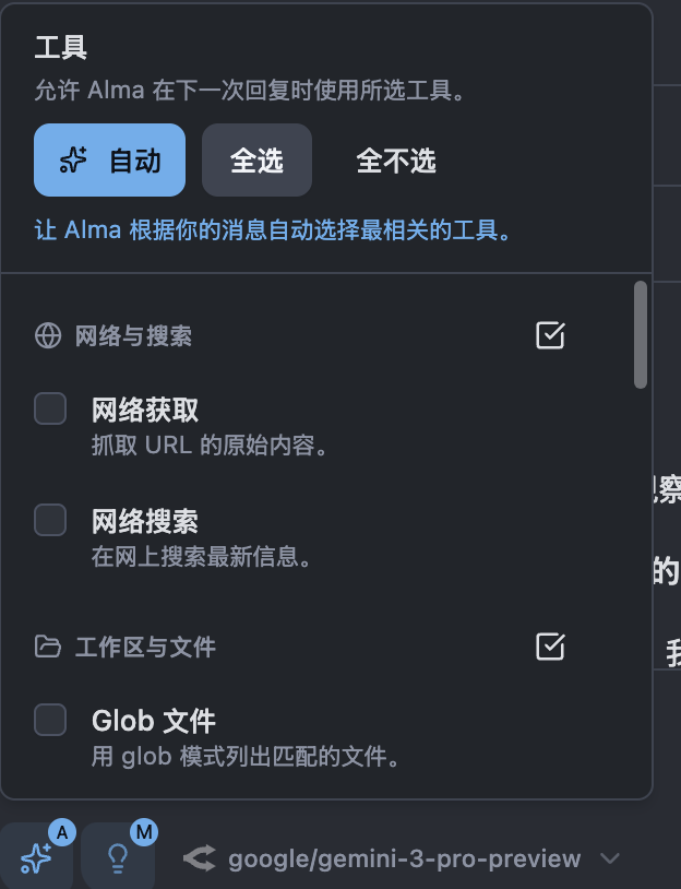 在个人事务处理上,我已经把主力工具从 Cursor 迁移到了 Alma,强烈推荐大家一试。