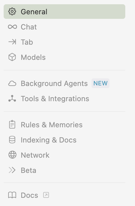 最后,Cursor 的设置页面也更加细致且人性化,选项分类清晰,开关明确,一目了然(如下图)。这种对用户体验的打磨,正是成熟产品的体现。